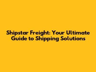 Shipstar Freight: Your Guide To Shipping Solutions