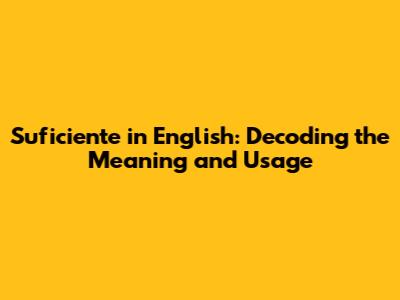 Suficiente In English: Meaning, Usage, And Examples
