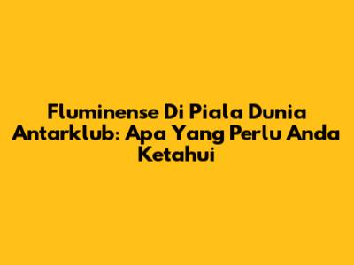 Fluminense Di Piala Dunia Antarklub: Apa Yang Perlu Anda Ketahui