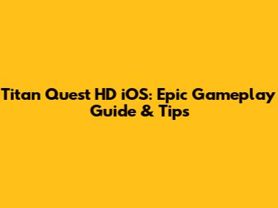 Titan Quest HD IOS: Epic Gameplay Guide & Tips