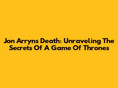 Jon Arryn's Death: Unraveling The Secrets Of A Game Of Thrones