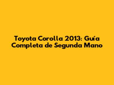 ¿Por Qué Elegir un Toyota Corolla 2013 de Segunda Mano?