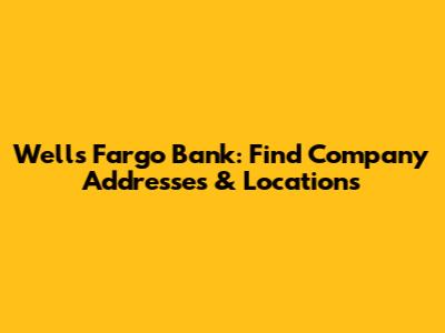 Wells Fargo Bank: Find Company Addresses & Locations