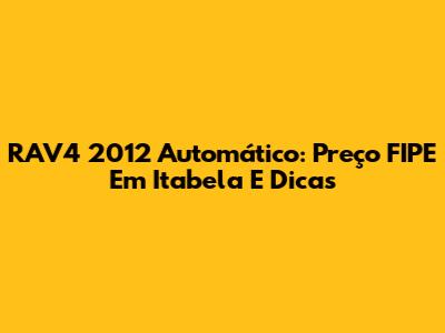 RAV4 2012 Automático: Preço FIPE Em Itabela E Dicas