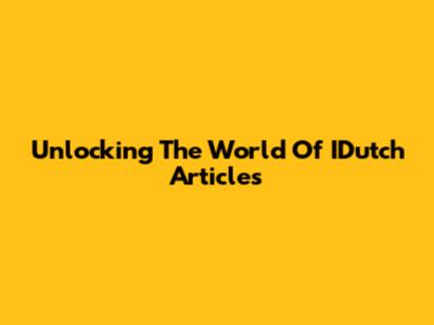 Unlocking The World Of IDutch Articles