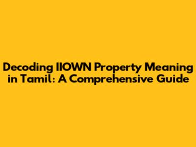 Hey guys! Ever stumbled upon the term 'IIOWN property' and wondered what it truly means in Tamil? Well, you're in the right place! We're going to break down the meaning, explore its nuances, and give you a solid understanding. This guide is designed to be super clear and easy to follow, so even if you're new to property jargon, you'll get the hang of it. Let's dive in and demystify the iiown property meaning in Tamil. This concept is super important, especially if you're navigating the world of real estate in Tamil Nadu or interacting with property-related documents or discussions.