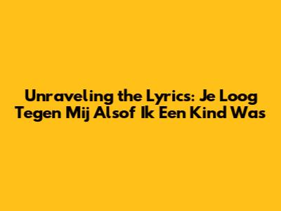 Hey music lovers! Ever stumbled upon a song that just grabs you, makes you feel all the feels, and leaves you pondering its meaning long after the last note fades? Well, that's exactly what happened to me with the track "Je Loog Tegen Mij Alsof Ik Een Kind Was." It's a Dutch song, and even if you're not fluent in the language (like me, lol), the raw emotion and storytelling are so potent that they hit you right in the heart. So, let's dive deep and explore the lyrics, the emotions they convey, and why this song resonates so strongly.