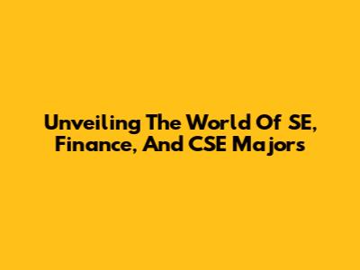 Unveiling The World Of SE, Finance, And CSE Majors
