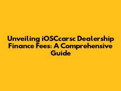 Unveiling IOSCcarsc Dealership Finance Fees: A Comprehensive Guide