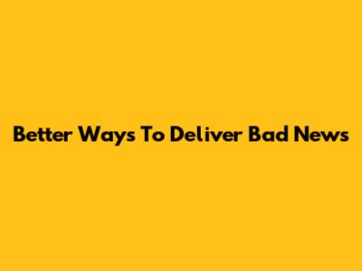 Better Ways To Deliver Bad News