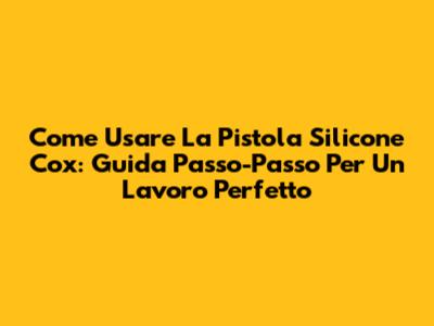 Come Usare La Pistola Silicone Cox: Guida Passo-Passo Per Un Lavoro Perfetto