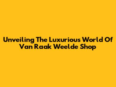 Unveiling The Luxurious World Of Van Raak Weelde Shop