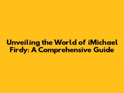 Unveiling The World Of IMichael Firdy: A Comprehensive Guide