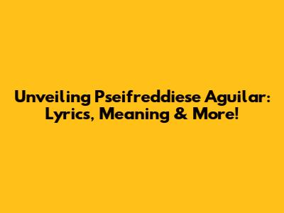Unveiling Pseifreddiese Aguilar: Lyrics, Meaning & More!