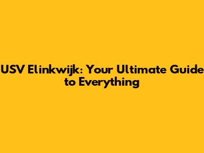 Hey sports fanatics and curious minds! Ever heard of USV Elinkwijk? If you're a football (soccer, for our US friends) enthusiast or just someone who enjoys a thriving community, then buckle up! We're diving deep into the world of USV Elinkwijk, exploring its history, the amazing people involved, its facilities, and why it's such a beloved institution. Get ready for a comprehensive guide that will give you the inside scoop on this awesome club.