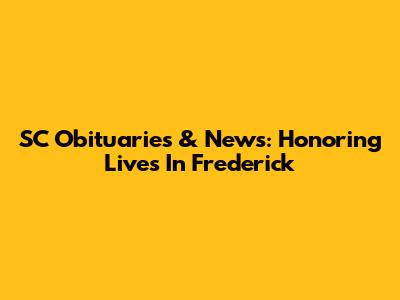 SC Obituaries & News: Honoring Lives In Frederick